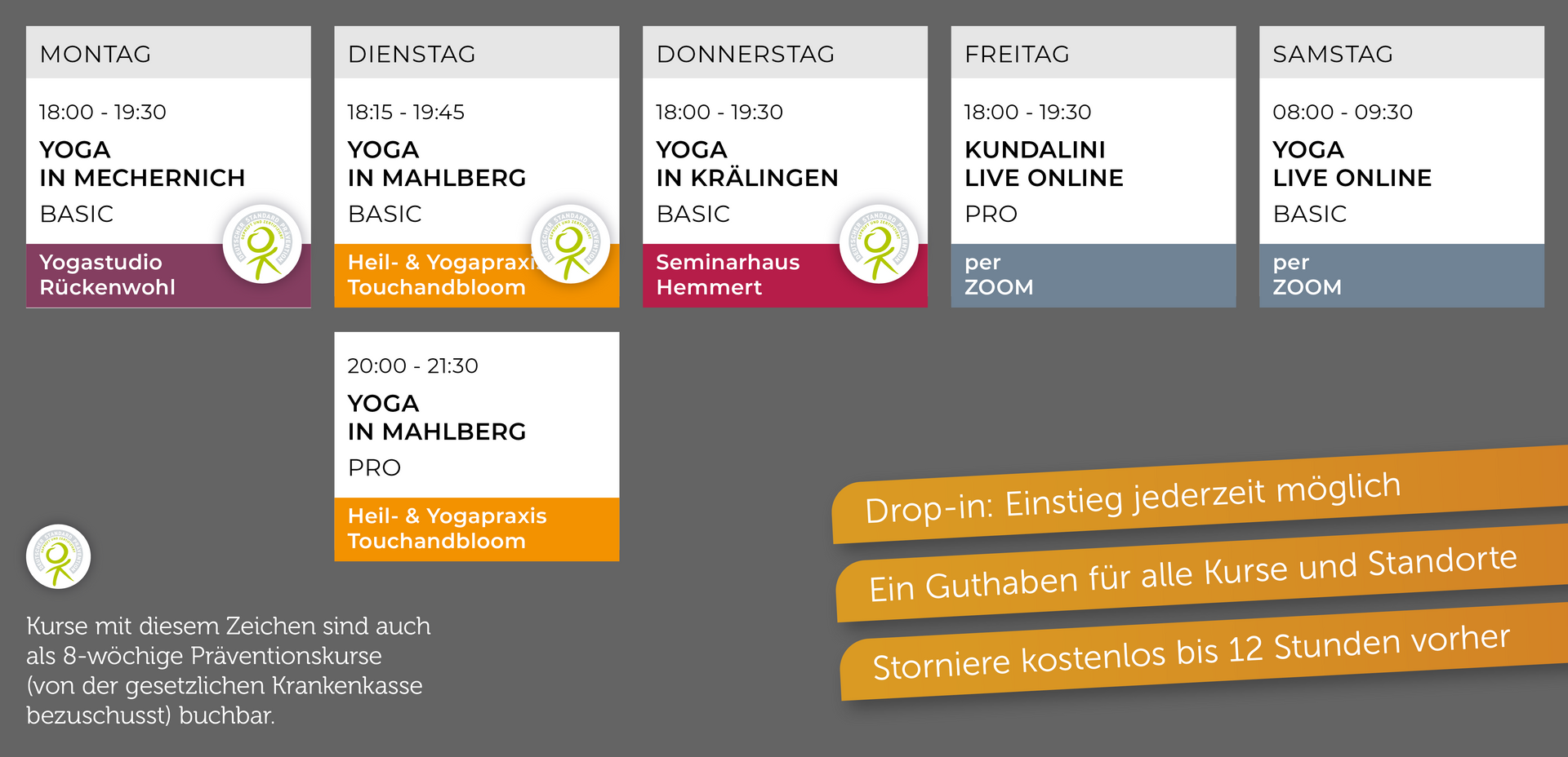 Zertifiziert nach §20 SGB V – 8 Einheiten, von Krankenkassen bezuschusst. Hier findest du alle Infos zur Buchung und zur Erstattung.